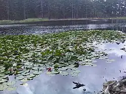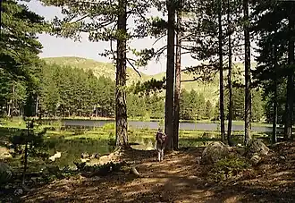 The Lac de Creno is in the Monte Rotondo massif at an altitude of 1,310 metres (4,300 ft).[1] It is in the Orto commune of Corse-du-Sud to the north of the 1,511 metres (4,957 ft) Monte Sant Eliseo. It is drained by the Ruisseau de Creno, which flows south to join the Fiume Grosso, a tributary of the Liamone river.[2] It is a glacial lake, partially covered by water lilies and surrounded by a forest of laricio pines. It is fairly easy to reach by foot from the village of Soccia at an elevation of 1,000 metres (3,300 ft), and is busy in summer.[1]