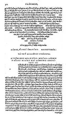 - Plato: Laches, Protagoras, Meno, Euthydemus. Greek with translation by W. R. M. Lamb. Loeb Classical Library 165. Harvard Univ. Press (originally published 1924). ISBN 978-0674991835 HUP listing