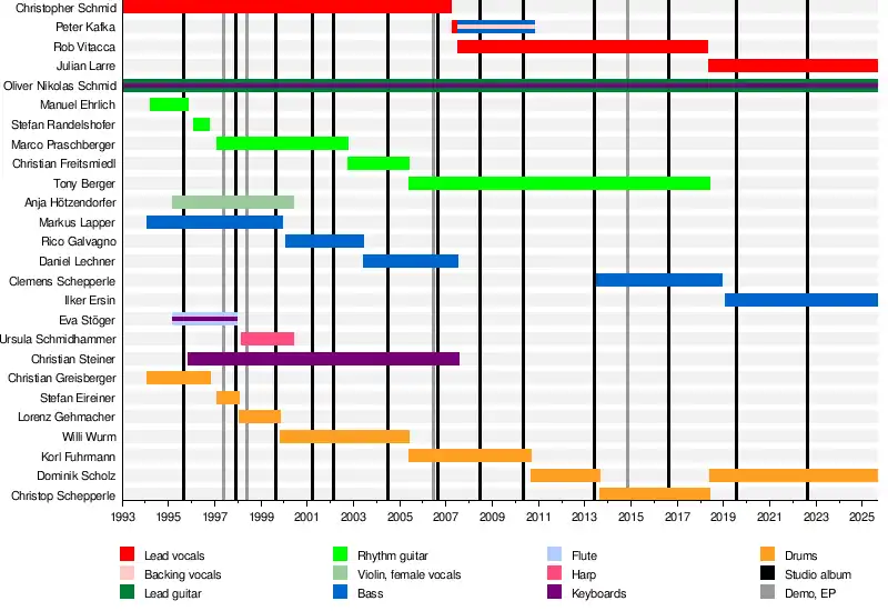 - Oliver Nikolas Schmid – lead guitar, keyboards, music (1993–present)