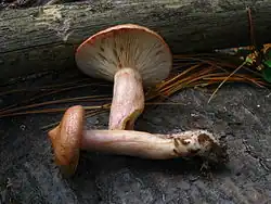 - ^ Hesler LR, Smith AH (1960). "Studies of Lactarius – II. The N.A. Species of Sections Scrobiculus, Crocei, Theiogali and Vellus". Brittonia. 12 (4): 305–60. doi:10.2307/2805123. JSTOR 2805123. S2CID 1928365.