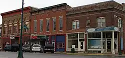 In 1840 there were fifteen buildings in Ladoga, including two large stores selling general merchandise — one owned by Taylor Webster and one owned by William Nofsinger. By 1848, there were thirty families living in the town.[8] The Haw Creek Academy was built two miles south of Ladoga in 1838 by the Christian Church. In 1855, the Ladoga Female Seminary was established by the Baptist Church, which quickly decided to allow male students, and shortly afterward the Ladoga Male Academy was established, which soon allowed female students. (Both decided to let in the other gender because of financial concerns.)[9] Central Normal College was founded in Ladoga in 1876; it moved to Danville in 1878. The original building still stands in Ladoga. Known as Normal Hall, it was listed on the National Register of Historic Places in 1996.[10]