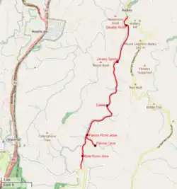A kilometre-long offshoot of the track from the Palona Brook Picnic Area leads to the Palona Cave, a large limestone overhang featuring columns, stalactites and even green moss; not reminiscent of most other pristine white limestone caves. 8.7 kilometres (5.4 mi) in, the last of the four rest points, the Bola Picnic Area, can be found at the intersection of Lady Carrington Drive and the Forest Track, which is a short, circuit track that runs through a dense rainforest section of the park. The trail ends at 9.7 kilometres (6.0 mi), where the trail connects to Lady Wakehurst Drive.