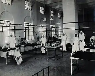 The college was inaugurated on 7 February 1916 by Baron Hardinge in the Imperial Delhi Enclave area. On the suggestion of Queen Mary, the college and the hospital was named after Lady Hardinge to pay an ode to the memory of its founder. The maiden principal of the institution was Kate Platt and the college admitted 16 students. At the commencement of operations, the college was affiliated to University of the Punjab, owing to which the students had to sit their final examinations at King Edward Medical College in Lahore. The college eventually became affiliated to the University of Delhi in 1950; post-graduate courses followed suit in 1954.[5] Ruth Young, who, as Ruth Wilson, was the first professor of surgery at the college, served as the principal from 1936 until 1940.[6] The Kalawati Saran Children's Hospital, one of the two hospitals attached to the Lady Hardinge Medical College, was constructed in 1956.[7]
