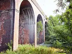 The valley has some notable features along its course including Bramall Park and the seven arches railway viaduct in Cheadle Hulme. South of Hazel Grove it is used to delineate the boundary between Greater Manchester and Cheshire. The Ladybrook is a tributary of the River Mersey, the confluence being near Cheadle, immediately after flowing under the M60 motorway.