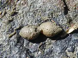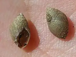 | Two live Laemodonta exaratoides withdrawn into shell | |
