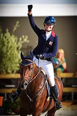 Laetitia du Couëdic de Kerérant (born 6 June 1996) is a Franco-Swiss equestrian rider. Her specialty is show jumping, either individually or as part of a team. She was Swiss junior champion in Lugano Switzerland in August 2013, a month after she won a gold medal at The European championship (Swiss team) at Vejer de la Frontera Spain. Laetitia du Couëdic started her official CSI programme in 2015 at the CSI5* in Zurich riding Elisa followed by Cagnes-sur-mer France on her recently acquired[1] (From French Champion Kevin Staut, her mentor) Cheyenne 111 Z HDC. In October 2013, she won the Grand Prix U25 CSI at Chevenez (JU) and was a wild card entry for the CHI Geneva in Geneva where she was the youngest rider. Laetitia du Couëdic is ambassador[2] of Hermès, the French Luxury goods maker. She is also an ambassador of JustWorld international, a charity project. In 2017 she won the Fontainebleau Grand Prix (CSIOY - Fontainebleau (FRA) (04/05/2017 - 07/05/2017) and was Bronze medal at Swiss championships (young riders). Laetitia has been selected for the Swiss team competing at the European Championships in Samorin (Slovakia) where she ranked 17th. She rides regularly the "Saut Hermès" in Paris, The Rolex Grand-Prix in Geneva.