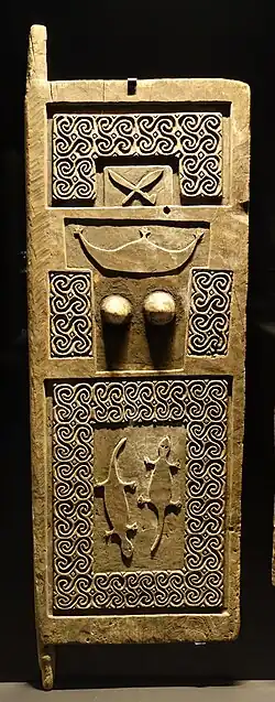 The crocodile is a prominent symbol in Timorese culture, frequently appearing in traditional handicrafts, artworks, and carvings within sacred houses (Tetum: Uma Lulik; Fataluku: lee teinu). Traditional depictions, from a European perspective, may resemble lizards. Xanana Gusmão, a politician and writer, celebrated this cultural icon in his poem, Grandfather Crocodile.[11]