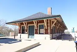 Lafayette station is an Amtrak station in Lafayette, Indiana, served by the Cardinal. The current station facility was established in 1994. The Amtrak train previously stopped in the middle of the city's 5th Street, near the former Monon Railroad depot.[3] The station building was moved to its current location from the southeast corner of 2nd and South streets in September 1994.[4] It is a Romanesque Revival style depot built in 1902 by the Lake Erie and Western Railroad and Cleveland, Cincinnati, Chicago and St. Louis Railway,[5] as the Big Four Depot.[6] The station was listed on the National Register of Historic Places in 2003.[2]
