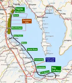 The Laguna Lakeshore Expressway Dike[41][42] is a proposed expressway in the coastal area of Laguna de Bay in the Philippines, from Taguig in Metro Manila to Calamba and Los Baños in Laguna.
