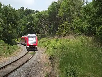 Before the timetable change in December 2014, the Lahntalexpress was operated with class 612 sets with active tilting. These trains ran faster through the winding Lahn valley.