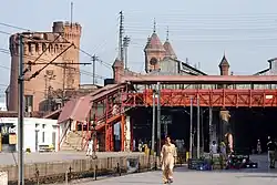 Lahore Junction Railway Station (Urdu, Punjabi: لاہور جنکشن ریلوے اسٹیشن), is the main railway station in Lahore, Pakistan. It is among the oldest railway stations of the Indian subcontinent. Construction commenced shortly after the 1857 War of Independence.[1] It was built in the style of a medieval fort with thick walls, turrets, and holes to direct gun and cannon fire for the defence of the structure.[2]