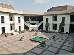 The oldest building at LUMS is the two-storey Academic Block designed by Habib Fida Ali which spreads over an area of 150,000 sq. ft. The Mushtaq Ahmad Gurmani School of Humanities and Social Sciences (MGSHSS) is based in this building.[37] The five-storey Suleman Dawood School of Business (SDSB) building occupies an area of 160,000 sq. ft, and accommodates over 1300 students. The Syed Babar Ali School of Science and Engineering (SBASSE) is based in a 5-storey building which covers an area of 300,000 sq. ft; the building includes a 10MW electrical grid station and 20 research labs.[37] The latest addition to the building is National Incubation Center in the basement. The Shaikh Ahmad Hassan School of Law (SAHSOL) spreads over an area of 78,000 sq. ft and comprises auditoriums, discussion rooms, faculty offices, meeting rooms, the Centre for Chinese Legal Studies and a state of the art moot court which is a replica of the courtroom of the Chief Justice of the Lahore High Court.[38]