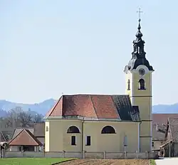 The local church is dedicated to Saint Florian[6] and belongs to the Parish of Cerklje na Gorenjskem.[7] It dates from the 17th century and was renovated in 1830.[3]