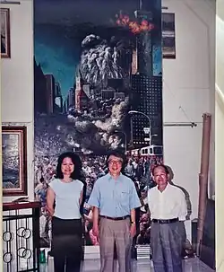 In 2001, after the events of the September 11 attacks at the World Trade Center in New York, Lai immediately lifted his paint brush and spent 300 hours to depict and record this ground breaking tragedy. The painting stands at 4metres tall and 2metres wide, showing the aftermath of the chaotic situation right when the south tower was collapsing. Private collectors value this piece at USD$1.5M back in 2002.[23]