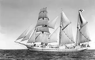 The war reparation programme included three different types of three-mast schooners: 17 were merchant ships with square rigs on the fore masts; the total sail area was 822 m². The other types had 834–840 m² sail area and they featured conventional gaff rigs or Bermuda rigs. Cargo schooners had a hold of 525 m³. The total length of ship was 49.25 metres, width 8.75 metres and hull height was 3.9 metres. The ships were also powered by a 285-hp hot-bulb engine; the first schooners had Swedish June-Munktell, gradually since May 1948 by a Valmet-produced unit called Siuro, and the ships of the series featured British Mirrlees engines. LaTe produced 15 of the training ships the rest 30 being cargo schooners.[1]