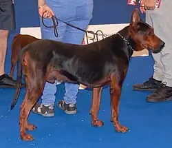 Laizhou Hong is a large, molosser-type(mastiff) dog with strong athletic ability. They are muscular and have red, black or Reddish brown fur with black saddle, etc.[7]