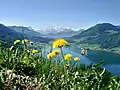 Ägerisee or Lake Aegeri is a glacial lake in the Canton of Zug, Switzerland. The two municipalities along its shore are Oberägeri and Unterägeri. The main tributary is the Hüribach; the Lorze river drains the Ägerisee. Since 1992 the lake has been used as a water reservoir.