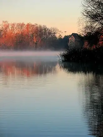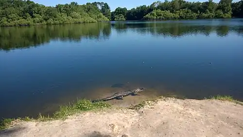 The lake is a wildlife area and is one of the few areas in incorporated Gainesville where one may view live alligators. The lake also harbors a population of Florida softshell turtles. The university's bat house is near the lake.[1] The Baughman Center sits on the southwest bank of the lake. On Lake Alice's northern side, there is a boardwalk that leads visitors through the woods and swamp to a viewing platform.