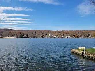 Lake Beseck, also known as Beseck Lake, is a body of water in Middlefield, Connecticut, measuring a little less than 1 mile in length and a quarter mile in width. It is owned by the Department of Environmental Protection and was created in 1846 when it was dammed. The initial dam, finished in 1848, was ten feet lower than the current one. The dam was raised in 1852 and in 1870, each time by five feet; it was rebuilt in 1938.