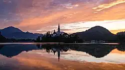 - ^ Kermavnar, Simona; Turk, Matija. "Podružnična cerkev Marijinega vnebovzetja na Otoku na Bledu" [Assumption Chapel of Ease on the Island in Bled]. In Šmid Hribar, Mateja; Golež, Gregor; Podjed, Dan; Kladnik, Drago; Erhartič, Bojan; Pavlin, Primož; Ines, Jerele (eds.). Enciklopedija naravne in kulturne dediščine na Slovenskem – DEDI [Encyclopedia of Natural and Cultural Heritage in Slovenia] (in Slovenian). Retrieved 23 April 2013.