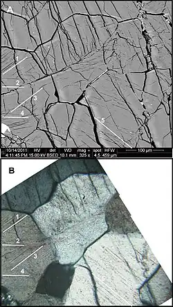 - ^ Losiak, Anna; Golebiowska, Izabela; Ferrière, Ludovic; Wojciechowski, Jacek; Huber, Matthew S.; Koeberl, Christian (2016-04-01). "WIP: A Web-based program for indexing planar features in quartz grains and its usage". Meteoritics & Planetary Science. 51 (4): 647–662. Bibcode:2016M&PS...51..647L. doi:10.1111/maps.12614. ISSN 1945-5100.
