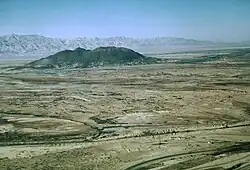 Bat Caves Butte and Obsidian Butte formed islands in the lake when it was full[31] although during highstands the latter was submerged.[32] Relatively straight northwest–southeast trending eastern shores faced from northwest to southeast the Indio Hills, the Mecca Hills, the Orocopia Mountains, the Chocolate Mountains and the East Mesa. The less regular western shore faced the Santa Rosa Mountains towards north and the Fish Creek Mountains and Vallecito Mountains farther south.[17] Earlier lake stages may have extended into the Jacumba Mountains as well.[33]