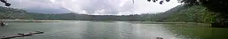 Lake Calibato is one of the seven crater lakes collectively called Pitong Lawa or Seven Lakes of San Pablo in Laguna province in the Philippines. The lake is situated in Brgy. Sto. Angel in San Pablo City. Calibato has an area of 42 hectares (100 acres) and maximum depth of 135 metres (443 ft). Calibato's maximum water capacity is approximately 29,600 cubic metres (1,050,000 cu ft). Its supplies the city and nearby towns with abundant fish and aquatic plants. The lake is the deepest recorded lake among the seven-lake system; no recorded depths are available for Muhikap.