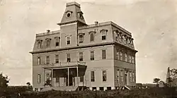 On October 2, 1890, Lake Charles College opened its first term, its main building completed at a cost of nearly $20,000. It was a three-story, 14-room building sized 55 by 85 feet.[10] It offered both a collegiate program and a preparatory program, roughly equivalent to a high school of the time; throughout its existence, the vast majority of students were enrolled in the preparatory program.[11] Roughly a third of its students came from the children of recent immigrants from the North.[12]