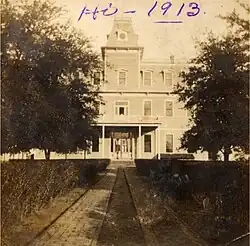 In September 1900, a new Lake Charles College opened in the old building.[21] It was led by J. T. Barrett (1854–1939), who had previously been president of Acadia College in Crowley. Barrett had grown Acadia's enrollment from 40 to nearly 300 students in five years – but its building had been destroyed by fire in 1899.[22][23] Barrett was a Baptist minister and a graduate of both Mississippi College and the Southern Baptist Theological Seminary, but the school was nondenominational.[21]