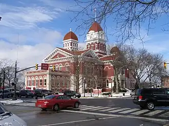 The Lake County Courthouse, in Crown Point, Indiana, also referred to as the "Grand Old Lady", is a former county courthouse building that now houses the Lake County Historical Society Museum, offices, and the chamber of commerce.[2] The building is a combination of architectural styles, including Romanesque and Georgian. It was designed in 1878 by John C. Cochrane of Chicago, Illinois[3][4][5] and is listed on the National Register of Historic Places as part of the Crown Point Courthouse Square Historic District.