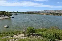 Lake Cunningham is an artificial lake in Lake Cunningham Park, in East San Jose, California, near the Eastridge Mall and Eastridge Transit Center. Although not a geological feature recognized in the Geographic Names Information System (GNIS), it serves as retention basin for Thompson Creek floodwaters. It is located on Capitol Expressway and stands next to Reid–Hillview Airport. The Lake Cunningham Skate Park and Raging Waters theme park are also in Lake Cunningham Park.