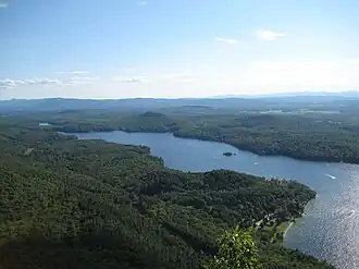 Lake Dunmore is a freshwater lake in Addison County, Vermont. The lake spans the towns of Salisbury and Leicester and has a surface area of 985 acres (3.98 km2).[1] Lake Dunmore is over 3 miles long (oriented north-south) and up to 1 mile wide. The primary source of water is Sucker Brook, which rises in the adjacent Moosalamoo National Recreation Area of the Green Mountain National Forest. The lake is drained by Leicester River, a tributary to Otter Creek, which in turn empties into Lake Champlain.