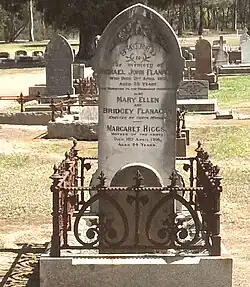 Flannigan conducted surveys on King Island several times from 1895 onwards, and bought two parcels of land there, above the Ettrick River. He was appointed as permanent District Surveyor for the island in 1899.[25] But severe ill-health forced him to leave the island in 1901. He returned to his family (his Irish mother, Margaret O'Halloran and her son from her second marriage, William Higgs) in Bendigo Victoria, and died there of tuberculosis in April 1901, aged 38.