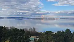 Looking east across Lake George after prolonged rainfall in 2022