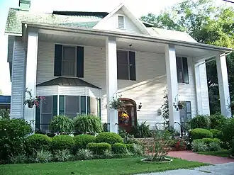 ![]() Peterson Hall, a contributing element of the district, was originally built for William and Gertrude Peterson in 1906. The Peterson family occupied the home for nearly 100 years. Presently the home is owned by the Lydick family. | |