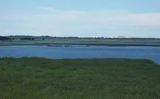 Łebsko Lake (Kashubian: Jezoro Łebsczo; Polish: Jezioro Łebsko) is a brackish coastal lake in the Pomeranian Voivodeship of Poland. It is connected to the Baltic Sea by the Łeba River, which causes saltwater intrusion.[1] It is located within Słowiński National Park. The lake formed when sea winds pushed up a spit of sand that ultimately separated it from the Baltic sea.[2] The town of Łeba sits where the Łeba river meets the sea.[1]