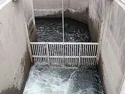 Under Nimbus Dam and Lake Natoma lies the Nimbus Fish Hatchery, operated by the California Department of Fish and Wildlife, that was built in 1955 by the U.S Bureau of Reclamation.[4] The California Department of Fish and Wildlife operates a visitor center here.[4] The hatchery replicates spawning environments by creating a fish ladder that guides salmon and steelheads to spawn.[4] For recreational fishing in the northern and Central California bodies of water, the hatchery produces 4 million Chinook salmon and over 400,000 steelhead trout per year.[4]