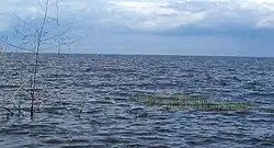 In May 2016, 33 square miles (85 km2) of the southern portion of the lake were affected by an algal bloom.[29] The outbreak was possibly due in part to nutrient-laden waters reaching the lake from farms and other sources.[29][30] Microcystin was found among the other species involved in the outbreak.[29]