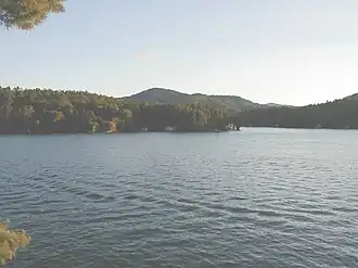 Lake Rabun is a twisty 835-acre (3.4 km2) reservoir with 25 miles (40 km) of shoreline located in the Northeastern corner of the U.S. state of Georgia in Rabun County. It is the third lake in a six-lake series that follows the original course of the Tallulah River. The series begins with Lake Burton as the northernmost lake, followed by Lake Seed, Lake Rabun, Lake Tallulah Falls, Lake Tugalo, and Lake Yonah. Lake Rabun was built in a deep valley located along a 10-mile (16 km) section of the Tallulah River.