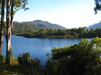 Lake Rosebery is a man-made water reservoir located in the West Coast region of Tasmania, Australia. The lake is situated within the northern part of Tasmania's West Coast Range and is fed by the dammed Mackintosh and Murchison rivers. The reservoir is owned by Hydro Tasmania.