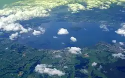 Lake Rotorua (Māori: Te Rotorua nui ā Kahumatamomoe) is the second largest lake in the North Island of New Zealand by surface area, and covers 79.8 km2.[1] With a mean depth of only 10 metres it is considerably smaller than nearby Lake Tarawera in terms of volume of water. It is located within the Rotorua Caldera in the Bay of Plenty Region.
