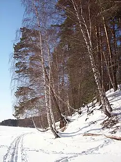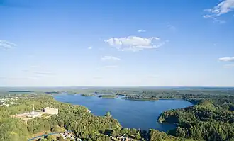 Lake Sapsho (Russian: Сапшо́) is a glacial lake in Demidovsky District of Smolensk Oblast, Russia. It is the largest lake[1][2] (3,04 km2) of the Smolenskoye Poozerye National Park. It is situated northeast of Demidov in the northwestern part of the oblast, near the settlement of Przhevalskoye. Famous 19th century Russian traveller Nikolay Przhevalsky compared the lake with Lake Baikal in miniature.[3][4] The lake is a natural monument.[5] It is connected with the Baltic Sea by the Sapsha, Vasilyevka, Yelsha, and Daugava rivers. There are 4 big and 2 small islands on the lake. There are a lot of tumuli of the Tushumlin culture by Lake Sapsho.[6][7] The flora and fauna of the lake are very diverse. Yet in the beginning of the 20th century there was the industrial fishery.[8] Though now any industry is prohibited here. A lot of species of the flora and fauna of the lake are in the Red Book.[9]