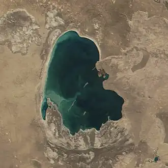 - ^ a b Orlovsky, Leah; Matsrafi, O.; Orlovsky, N.; Kouznetsov, M. (2014). "Sarykamysh Lake: Collector of Drainage Water – the Past, the Present, and the Future". The Turkmen Lake Altyn Asyr and Water Resources in Turkmenistan. The Handbook of Environmental Chemistry. Vol. 28. Berlin, Heidelberg: Springer-Verlag. pp. 107–140. doi:10.1007/698_2012_191. ISBN 978-3-642-38606-0.