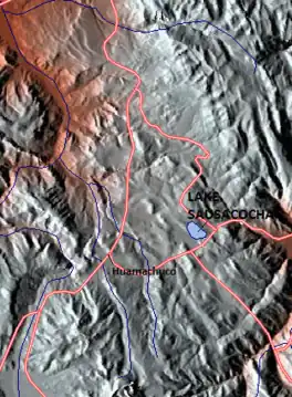 Lake Sausacocha (Spanish: Laguna Sausacocha, Quechua: Sawsaqucha) is a lake in Peru, 10 kilometres (6.2 mi) to the northeast of Huamachuco in Huamachuco District, Sánchez Carrión Province.[1][2] Literal meaning of Sausacocha is "lagoon that never dries."[3] Overgrazed hillsides surround the lake and there are also Inca ruins nearby.[4]