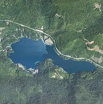 Lake Sutherland is named for the Canadian fur trapper John Sutherland who, with John Everett, explored the lake around 1865.[1][2] Lake Sutherland and Indian Creek sustained anadromous fish populations until construction of the Elwha Dam in 1913 blocked access to the ocean, eliminating several salmon species from Indian Creek and landlocking others.