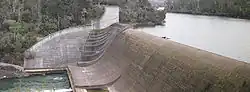 The dam diverts water to the Trevallyn Power Station through a 3.2 km tunnel.[1]