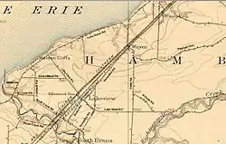 Early settlers were Ebenezer Ames, Jacob F. Schoellkopf, a successful entrepreneur in western New York,[1] and Ebenezer Walden, a prominent Buffalo attorney and mayor whose family built the Lake View Hotel in 1880 to serve the many traveling salesmen who arrived on the seven daily trains on the Lake Shore and Michigan Southern Railway (later part of New York Central Railroad) to sell their wares in the surrounding countryside.[2] The salesmen (called "drummers") would rent a horse and buggy from the livery stable behind the six-room hotel to make their rounds.