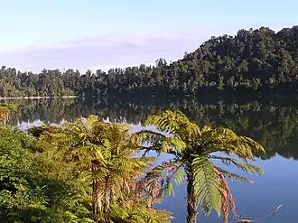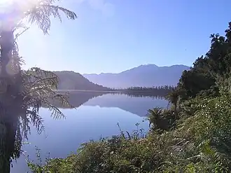 Local Māori called the lake Wahapako, after one of the daughters of a rangatira, Kārito, for whom Ōkārito is named.[11] Wahapako was a traditional mahinga kai (food-gathering place) for local Māori, who would come to the lake to gather longfin eels.[12] The now-extinct New Zealand grayling (Prototroctes oxyrhynchus), known to Māori as upokororo, was an important food source for Māori, and were abundant in the area; the outflow from Lake Wahapo was one of the last areas in which the species was reliably recorded.[13]