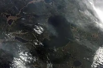 ![]() Lake Winnibigoshish (center), as viewed from space | |