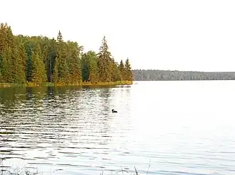 Ironwood Lake is a medium-sized lake in the southeast corner of the recreation area. The name Ironwood is not of local origin.[21] Prior to the official naming of Ironwood in 1951 it was referred to as Rocky Island Lake. Cree names for the lake included Kamistigwapskasik Sagahegan meaning Little Stony Island Lake or Chipay Sagahegan, meaning Skeleton Lake.[22] Nearby Helena, Horne, and Frenchman Lakes empty into Ironwood, which itself empties into Rich Lake and then into the Beaver River. Ironwood Lake is a key point for many spawning fish in the area.